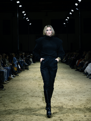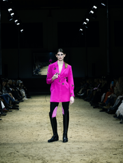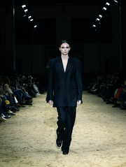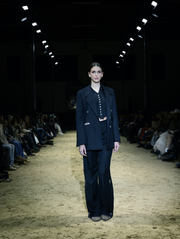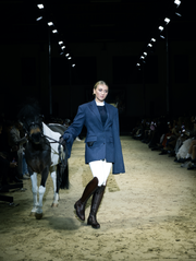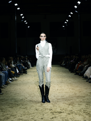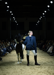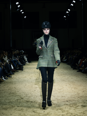 This is a line that celebrates movement and strength: impeccably tailored suits that precisely hug the silhouette, coats that drape with elegance, evening pieces with an emphasis on sensuality, and daytime outfits ready to transition from the stables to the urban rhythm. Functionality comes through sporty elements—denim shorts and cotton T-shirts paired with refined silk, lace that adds a sense of mystery, and the finest wool fabrics for warmth. The color palette is sophisticated: dark blue and brown as a base, black and ivory for depth, with touches of pink and green that bring freshness.