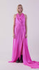 Long asymmetric bright pink sleeveless and backless gown dress with scalloped neckline and gown trail