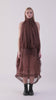 Chocolate brown multilayered sleeveless and backless silk chiffon high neck halter dress