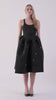viscose satin corseted upper part with spaghetti straps and extended pointed front panel